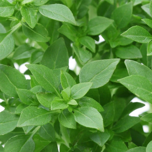 Greek Basil is a small-leaf dwarf variety that grows into a tight dome, about 1’ tall and wide. A great one for containers, hanging baskets, and indoor gardens. The bright green, oval leaves and soft stems have hints of clove and anise, and keep their flavor when dried. Use this variety to flavor herb butters and vinaigrettes, and the edible flowers as a garnish or salad green.