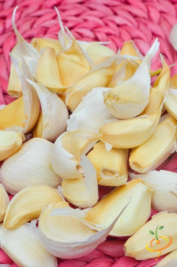 - Beautifully bright white skin with light rose-colored streaked cloves