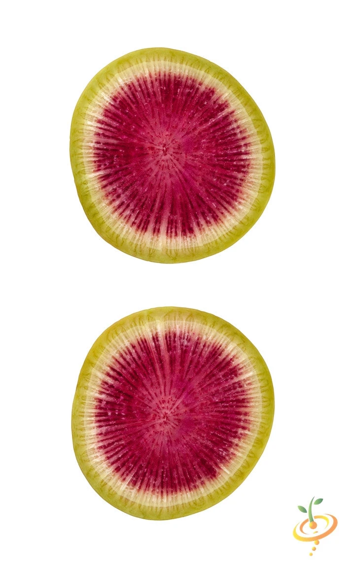 - Very large white radish with pink/red flesh giving the appearance of watermelon